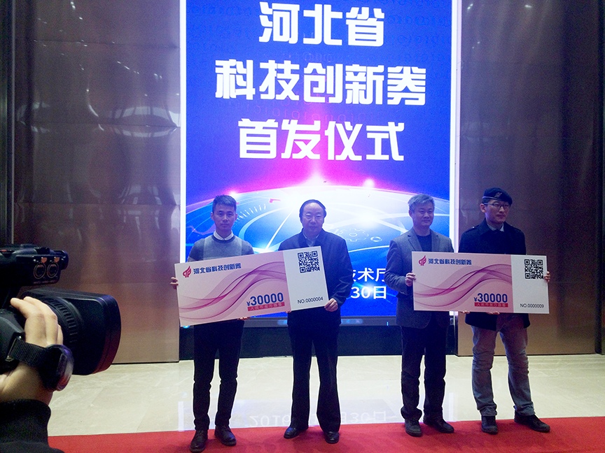2016年12月30日,河北省科技創(chuàng)新券首發(fā)儀式暨創(chuàng)新服務(wù)提供機(jī)構(gòu)授牌儀式在石家莊舉行。省科技廳黨組副書(shū)記、副廳長(zhǎng)郭玉明出席活動(dòng)并講話,并對(duì)科技創(chuàng)新券的使用提出了具體要求。來(lái)自省內(nèi)的30家創(chuàng)新創(chuàng)業(yè)團(tuán)隊(duì)代表參會(huì),石家莊高新區(qū)科技局代表審核發(fā)放機(jī)構(gòu)介紹個(gè)創(chuàng)新券使用說(shuō)明及首批申領(lǐng)情況。郭玉明副廳長(zhǎng)為10家創(chuàng)新服務(wù)提供機(jī)構(gòu)授牌,并為10家創(chuàng)新券申領(lǐng)單位代表發(fā)券。