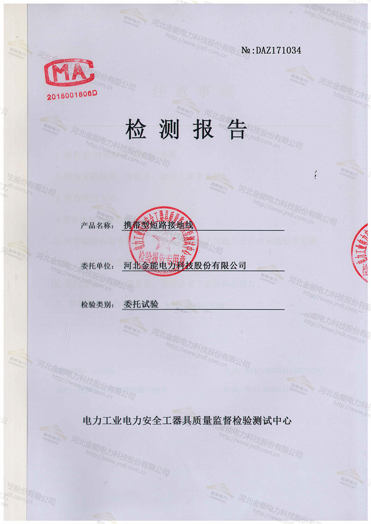 110kv 35平方攜帶型短路接地線檢測(cè)報(bào)告