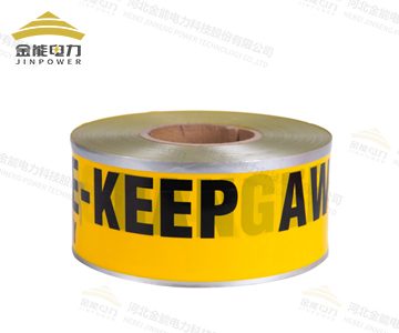 可探測地埋警示帶原材料的使用:金能電力的可探測地埋警示帶采用的是高強度、耐老化的PE、PP、OPP高分子材料,色澤鮮艷、醒目,可以長期鋪設(shè)在地下50年不腐蝕,不褪色。而縱觀市面上一些其它廠家生產(chǎn)出來的產(chǎn)品,要么就是使用的再生材料,壽命短,沒有韌性,稍微一用力就會斷掉。要么就是在印刷上偷工減料,色澤暗啞,字體很容易被腐蝕。